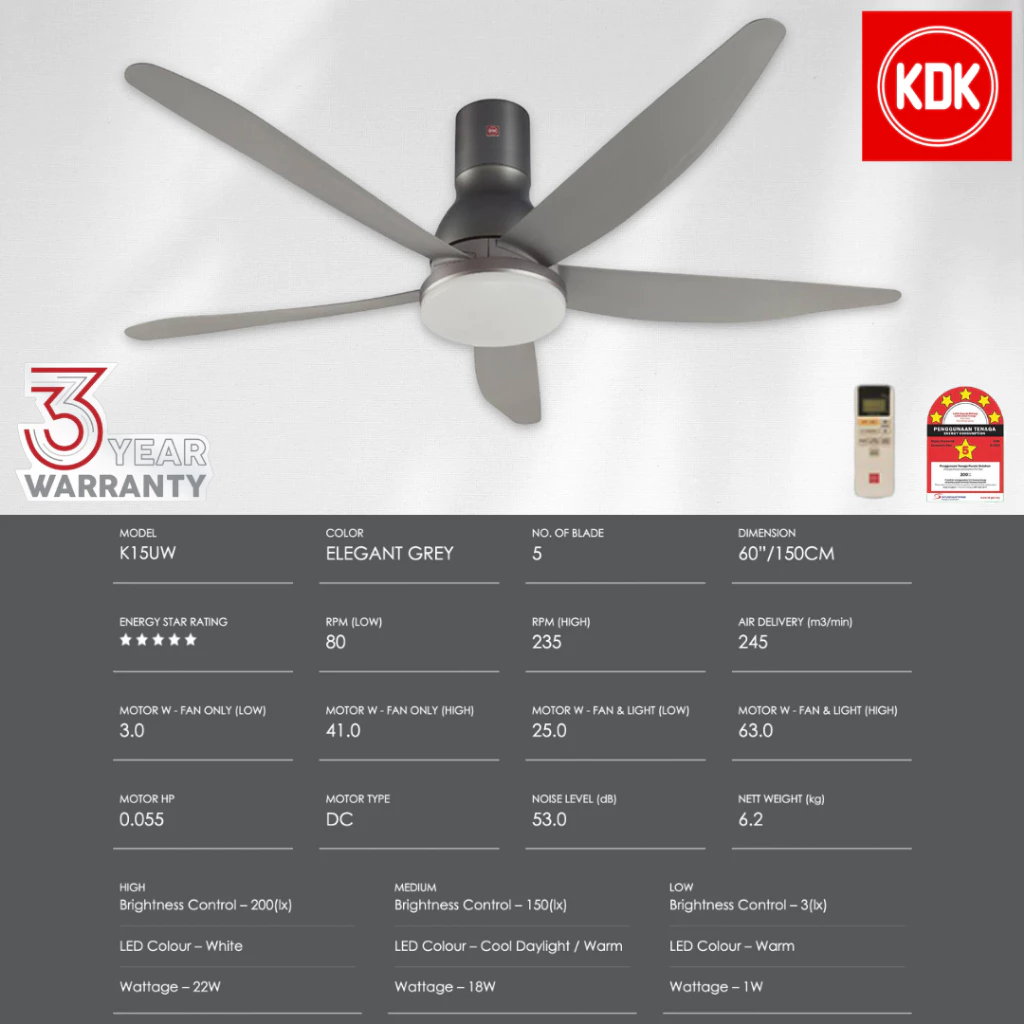 1x KDK K15UW-QEY Fan (Single Pack)