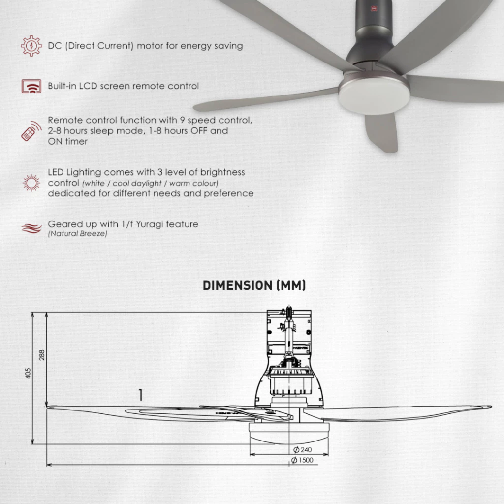 KDK Fan Ceiling Fan Nikko Series (60″ motor fan) Remote Control Type Ceiling Fan