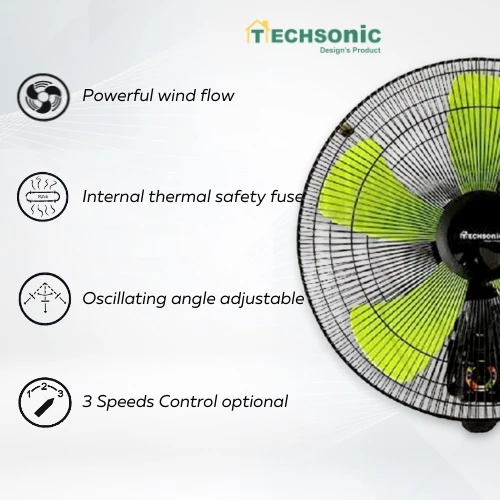 TECHSONIC 18″ Industrial Wall Fan Heavy Duty 3/5 Metal Blades Extra Strong Wind